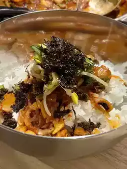 Pour Nakgopsae over white rice and add the refreshing sourness of water kimchi and the crisp texture of bean sprouts for a more textured experience. Additionally, chopped seaweed and garlic chives enhance the flavor, while shredded cabbage softens the overall spiciness, creating a perfect balance.