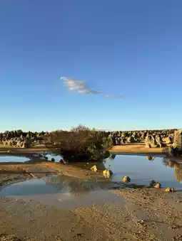 The Pinnacles Desert Drive is well-maintained, allowing visitors to explore the formations at their own pace by car. There are also walking trails for those who want a closer look and to wander among the pillars, which gives a much more intimate experience. I particularly enjoyed taking photos from low angles, which made the limestone structures seem even more dramatic against the wide blue sky. Informational signs along the trails explain the geology and history of the Pinnacles, including how they were formed from ancient seashell deposits over thousands of years.