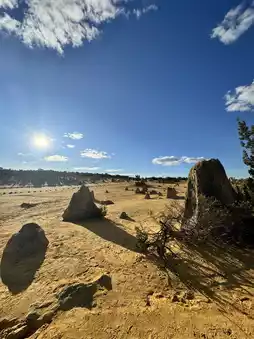 Visiting the Pinnacles Desert was one of the most surreal experiences of my trip through Western Australia. Located about two hours north of Perth, within Nambung National Park, the desert is famous for its thousands of limestone pillars that rise dramatically from the yellow sand, creating a landscape that feels almost otherworldly.