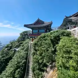 A pleasant walking path surrounds the temple, making the gentle breeze and the hike up to the temple itself feel like part of the journey. It's a place where you can clear your mind and enjoy the tranquility of a mountain temple in this serene atmosphere.