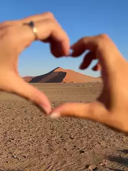 You can capture plenty of photogenic moments while driving along the orange sand dunes of Dunes 45 illuminated by the morning and evening sun, and the beautiful coast of Swakopmund!