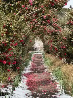 From the entrance, the camellia trees along the stone wall make you look forward to it, and from the giant heart camellia road to the camellia tunnel and camellia frame photo zone, it is a jaw-dropping sight wherever you go🩷