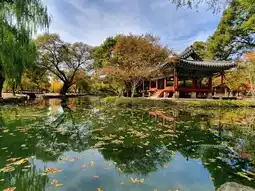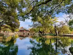 As you enter the garden, you'll be greeted by the wide pond with the Ojakgyo Bridge, the elegant Gwanghallu Pavilion, and the scenery that changes colors with each season. From cherry blossoms in spring, lotus flowers in summer, to autumn foliage, the natural beauty varies by season. Additionally, you can enjoy hanbok experiences and traditional games, making it a great place to visit with family, friends, or a partner.