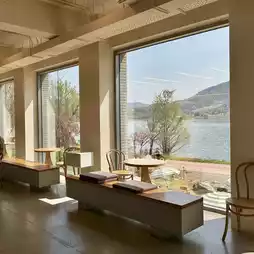 Cafe Royte is famous for its window seats overlooking the Bukhangang River and its delicious salt bread.