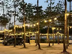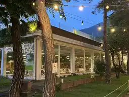 Located right next to the river, the gentle sound of water carried by the breeze created a serene ambiance. Parasols under pine trees blended harmoniously with nature, while warm, atmospheric lighting added a cozy touch. Seasonal plants made the outdoor space feel much fresher compared to indoor settings.