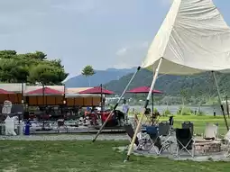 Cafe River Nine and The Dreaming Glamping Site are located together, so you can drink coffee, enjoy water sports, and camp, so it's "killing two birds with one stone."🌳