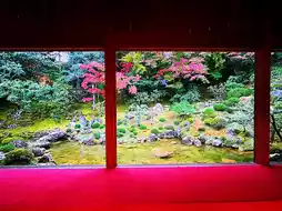 The traditional Hanok-style tiled roof and wooden pillars serve as a backdrop, enhancing the charm of the lush green lawn and neatly arranged flower beds. 🦋
