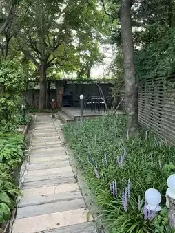The garden in front of the restaurant was filled with well-maintained trees and flowers, creating a charming and serene atmosphere. Walking slowly along the garden path, I could smell the subtle fragrance of grass, and beyond the garden, the Bukhan River flowed gently, blending harmoniously with the lush mountains to create a picturesque scene. ๐