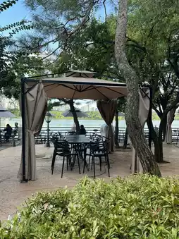 The well-trimmed trees and seasonal flowers blended together, making for a delightful stroll. Small benches and rest areas were placed along the path, allowing me to sit and relax while enjoying the breeze from the Bukhan River. 🌺