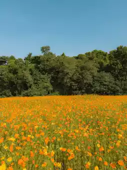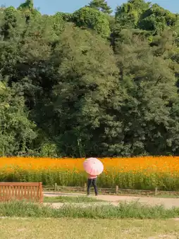 During the day, the vibrant orange hues of the cosmos flowers are stunning, and as the sun sets, the sky turns a deep red, making the flower fields even more radiant! The best time for photos is undoubtedly during the golden sunset hours in the evening🧡