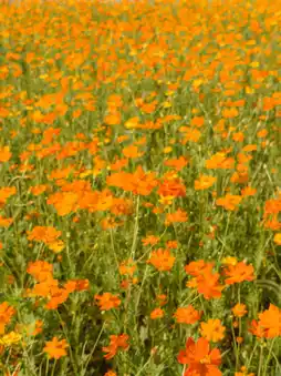 Right now, the flowers are at their peak, with vibrant orange cosmos in full bloom creating a breathtaking view. If you visit this weekend, you'll catch them at their most beautiful 🙌