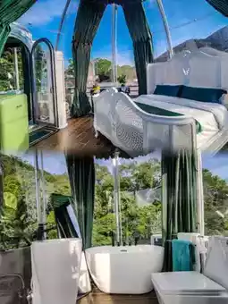 Stay in the Starry Sky Bubble House and enjoy a novel experience like in a fairy tale world! Each bubble room is independent and fully blocked by curtains, which ensures privacy while providing a dreamy and exquisite atmosphere. The super novel accommodation environment allows you to enjoy the entire starry sky. The room on the roof has an electric starry sky skylight and an extra-large bathtub. You can lie down and watch the night sky and the dazzling stars at night. Every detail is a secret place tailored for you! Bathtub bubble bath, customized toiletries, smart home, comfortable and complete supporting home furnishings and thoughtful service, you can enjoy the beautiful night view while also letting go of the day's fatigue and falling asleep easily.