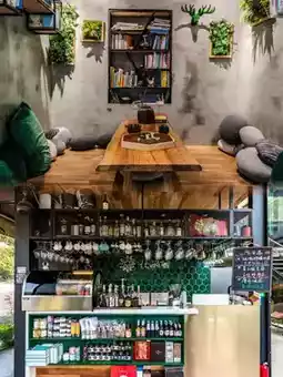 The winding path leads to the quiet B&B, which is like walking into a fairyland of peach garden. The B&B is rendered in large areas of dark green and matched with warm-colored wooden boards, and the texture is mixed with a bit of country charm! The forest design style is very exquisite. Standing in front of the oversized floor-to-ceiling windows, you can see lush green and fresh oxygen, and spend a few days living in the mountains and sea.