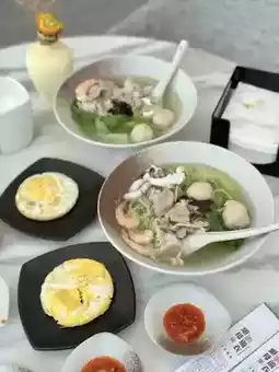 Equipped with breakfast, coffee, milk, seafood noodles... many choices