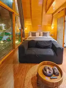 🏡 The room is a geometric wooden house with a very stylish design