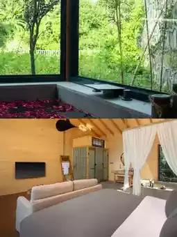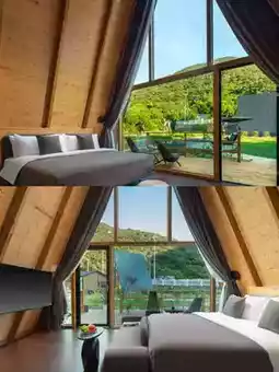 Each room is a standalone wooden cabin, featuring a private soaking pool and scenic courtyard! Details like smart toilets and washing machines add extra points. The bedding is super comfortable—I tested it myself, and even cleanliness fanatics won’t find a flaw. My favorite is the swing on their terrace; soaking in the hot tub while stargazing at night is romantically irresistible~
