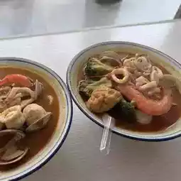 Check the opening hours in advance. It's crowded during lunch, so it's best to arrive before 11:30 AM! Their signature seafood satay noodles feature a rich and flavorful broth packed with fresh clams, shrimp, baby squid, and other seafood. The satay aroma makes it incredibly satisfying! The shop is small but offers fresh ingredients and a homely vibe.