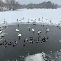 In winter, Onuma freezes over and turns completely white. There are also tours where you can walk on it on snowshoes. However, there are only a few areas that do not freeze over, and birds such as swans that have flown there gather there.
