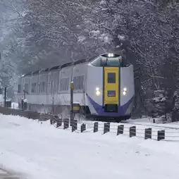 Onuma Quasi-National Park is a vast national park located north of Hakodate. It is made up of several large and small lakes and ponds, with Onuma at the center. In the summer, it is a popular summer resort with the beautiful Mt. Komagatake in the background. The photo shows the opposite season, winter.