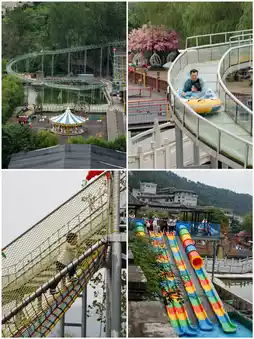 🔸 The attractions on the left side of the entrance are more leisurely, with accommodation, boat rides (40), children's park (68), glass water slide (50), fishing, chess and card room, etc.