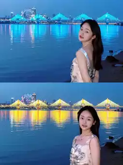 Watch the sunset/night view at Chaoyang River Beach Park.