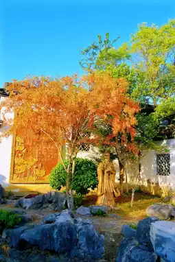 White walls and black tiles, pavilions and towers, winding water corridors and bridges, and different views at every step. Every frame is like an ink painting. The artistic sense of garden architecture and the sense of sight of Suzhou gardens are matched with autumn maple leaves.