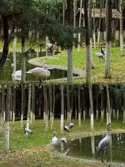 As soon as you enter Crane Garden, you can feel the strong autumn vibe. The golden leaves cover the path like a golden carpet, rustling under your feet. The reeds sway in the autumn breeze, as if they are dancing, and with the blue sky, you can take great photos anywhere. There are also several small lakes in the garden, with crystal-clear water reflecting the surrounding scenery. Of course, the most attractive are the elegant cranes. They sometimes play in the water and sometimes fly high, with various postures. Watching them makes you feel peaceful.