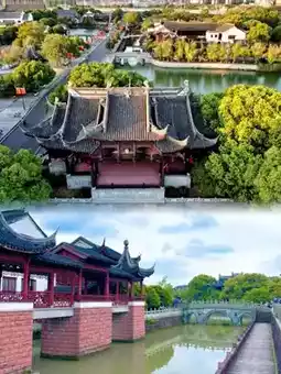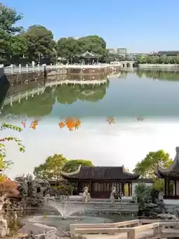 The buildings in the park adopt the traditional Jiangnan architectural style, with blue bricks and gray tiles, white walls and red columns, and cornices and corners, which are antique. There are a large number of garden landscapes in the scenic area, such as winding water surrounded by green trees, pavilions, rockery ponds, etc. These landscape elements set off each other, forming beautiful pictures of Jiangnan water towns.