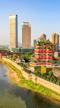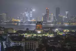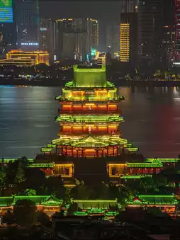 ✔️Riverside platform: Shoot during the blue hour at dusk, when the Yangtze River reflects the pavilion’s lights perfectly