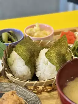 The wide variety of side dishes makes it easy to eat the onigiri. 🍙