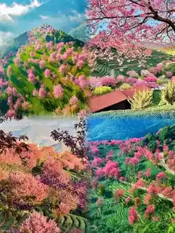 1⃣Wuliang Mountain, Dali, Yunnan: ◎Wuliang Mountain Cherry Blossom Valley is a tea garden. From the end of November to the beginning of December every year, the flowering period is about 25 days. The blooming cherry blossoms are like pink clouds, which is very spectacular.