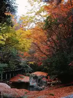 ✅ Reverse route is legendary! Enter from the upper entrance of Shibayue Pool and walk down the 3.2 km plank road with no backtracking. The 18 pools look like a string of green jade, some reflecting colorful forests, others surrounded by moss. The leaf whirlpool at Pearl Pool looks amazing with long exposure on your phone. The stream flows gently over piles of red leaves—every shot is a stunning "watermarked red maple" scene.