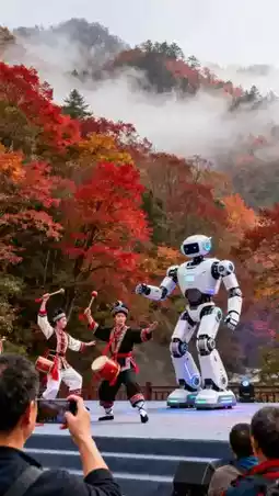 Robots take center stage. At the Red Leaf Festival Technology Carnival, robots not only hosted parts of the event but also performed the Charleston dance “Guangwu Red.” The highlight was the “Human-Machine Co-Creation” segment, where multiple robots and dancers performed the national intangible cultural heritage “Fanshan Jiazi” together, injecting a sci-fi flair into traditional art.