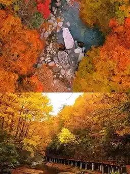 √ From early to mid-November, the autumn breeze blows. The fallen leaves intertwine with the red leaves on the trees, creating a rich atmosphere, like a flowing oil painting.