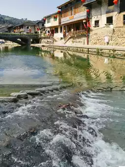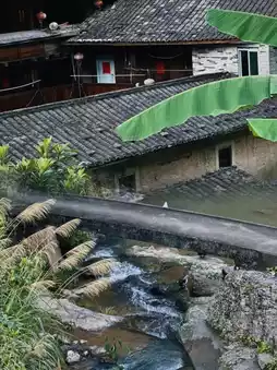 1. Yunshuiyao Ancient Town: Not far from Taxia Village, the ancient banyan tree cluster, cobblestone paths, and spectacular tulou cluster create a picturesque pastoral scene.