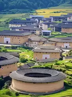 🔘 Tianluokeng Scenic Area includes the Tianluokeng Tulou Cluster, Yuchang Building, and Taxia Village, perfect for photo stops. The unique architectural style amazes children.