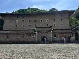 Walking along a path through the fields, we arrived at Hegui Tower. Besides its square shape, unlike other tulou, its most distinctive feature is that it was known from the outset that it would be built on swampy ground. Yet, they overcame this obstacle and completed the entire building, which has stood for a century. Even today, there's still a small area inside the building where you can experience the feeling of stepping on the soft earth.