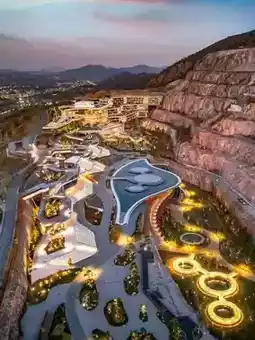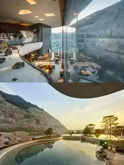 This is the first Yuerong Village hotel in Jiangsu. Based on the mine valley formed after the quarry was abandoned, it took only 498 days to build the current dreamy building. The hotel has introduced the royal "Millennium Holy Soup" Tangshan Hot Spring from a long distance, and has created an open-air hot spring pool. Here, you can enjoy the beautiful sunset and the scenery of the mine valley. The dusk is all around, the mist is steaming, it is very dreamy, and the body and mind immediately relax.