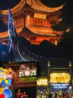 The romantic spot of Nanjing, take a night cruise on the Qinhuai River to feel the night view of Jinling.