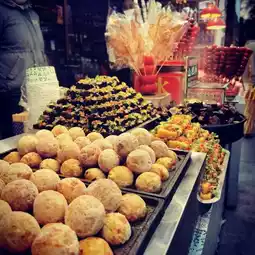 Lots of stalls with different varieties of food are in and out of the temple area 🥘🍤🍡.