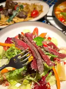 The beef fillet is medium rare, one bite down, soft stewed, juice splashing straight out, full of meat flavor. The taste of the Thai seasoning is tangy, tangy, and a bit sweet, and goes hand in hand with the crunchy vegetables for a rich and refreshing taste