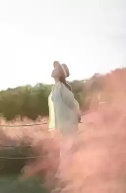 2️⃣ Shooting angle: Shoot from the bottom up, with the camera low, and try to avoid the grass rope. Use the pink grass as the foreground, and make sure the person and the pink grass are in the light.