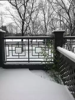 Step into the courtyard, through the wooden fence that is less than half the height of a person, and enjoy the unique charm of a snowy day.