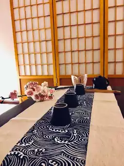 The apartment is Japanese-style, with light tones and an elegant, comfortable, and Zen-like atmosphere.