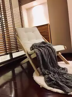 There is a reclining chair by the floor-to-ceiling window, with a long plush blanket at your feet, and you can walk barefoot.
