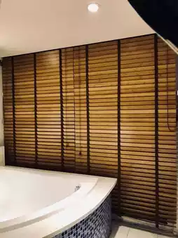 There is an indoor hot spring by the floor-to-ceiling windows. Light an aromatherapy lamp, and when it is quiet and empty, pull open the bamboo curtain, and you can enjoy the beautiful view of the courtyard while soaking in the hot spring. Enjoy the snow in the courtyard... It can also soothe the soul and relieve stress.