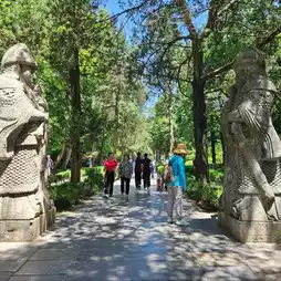 The Ming Xiaoling Mausoleum is one of the largest ancient tombs still in existence. It is grand in scale, set against the beautiful backdrop of Zhongshan. Walking along the Sacred Way, you will see six types of stone animals on either side. Next is the second section of the Sacred Way, known as Wengzhong Road, lined with stone statues of military officers and civil officials, creating a majestic atmosphere. The red walls and yellow tiles of the Wenwu Fangmen are stunning. Beyond the Fangcheng is the Ming Tower, and passing through it, you will see the wall of Emperor Zhu Yuanzhang's tomb. Climbing the tower offers an even broader view. The tomb has not been excavated, adding to the mystery of the Ming Xiaoling Mausoleum.