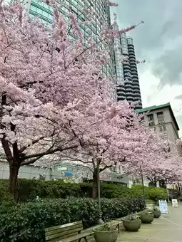 A hidden gem known only to locals! A few old cherry blossom trees create a canopy of blossoms, with strong branches and snow-like flowers. Entering through the side gate makes for even better photos.