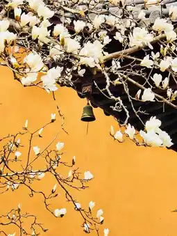 Wintersweet: The golden wintersweet is in full bloom in front of the Buddhist chanting hall. Ancient temple + wintersweet = Chinese aesthetic ceiling