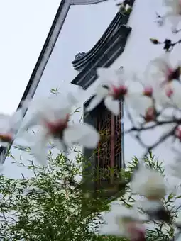 Crouch by the pond and shoot from a low angle. On a sunny afternoon, the light and shadow pass through the carved windows, and the reflection of magnolias, white walls, and black tiles on the water surface resembles an ink painting.